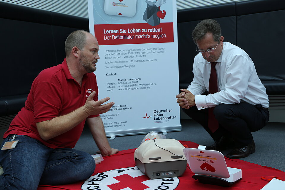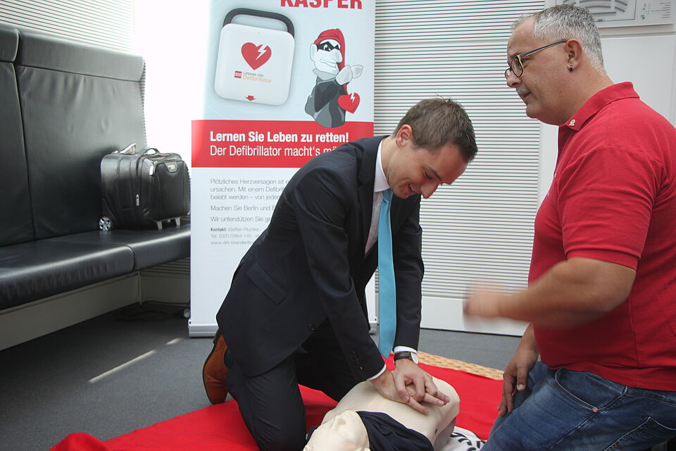Im Vorfeld des Welt-Erste-Hilfe Tages am 14. September hatte MdB Benjamin Strasser seine  Kollegen im Bundestag eingeladen, ihre Kenntnisse in Erster Hilfe zu überprüfen. Fraktionsübergreifend kamen mehrere Abgeordnete mit ihren Mitarbeitern in die Fraktionsräume der FDP, um an vier Stationen unter Anleitung der DRK-Landesausbilder die Herz-Lungen-Wiederbelebung zu üben. Für einige lag der letzte Erste-Hilfe Kurs schon lange zurück, sie hatten ihn für den Erwerb des Führerscheins absolviert. "Erste-Hilfe-Kenntnisse sollten regelmäßig aufgefrischt werden, damit Helfen im Notfall selbstverständlich ist", fordert Steffen Pluntke, Leiter des DRK-Kompetenzzentrums Bildung Berlin-Brandenburg.